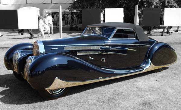 Succesul s-a datorat atât designului stilat cât şi altor caracteristici dintre care evidenţiem: top decapotabil, parbriz retractabil în capotă, apărători continui tip „fustă”, compresor de supraalimentare, motor impresionant de 175 CP şi 3.245 cc…